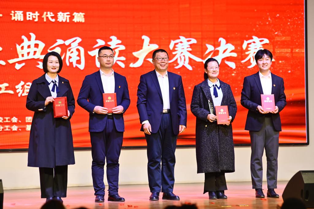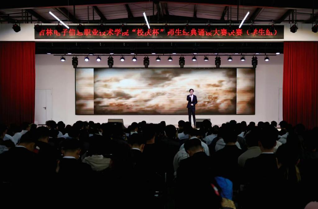 本次大赛是学校“校庆杯”系列文体活动之一,由学校工会、团委主办,各分工会、基层团委承办。广大师生齐吟经典、深情诵读,满怀对学校60 年发展历程的赤忱感悟和美好祝愿,倾情诠释了吉电职院教育工作者和莘莘学子奔向诗和远方、共赴时代征程的追梦华章。大赛共评选出教工组奖项11项、学生组奖项12项,其中现代服务学院教工参赛队荣获教工组一等奖、汽车工程学院学生参赛队荣获学生组一等奖。