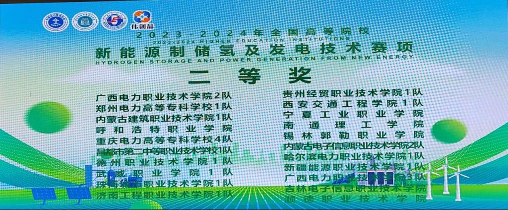 5月16日,2023-2024年全国高等院校新能源制储氢及发电技术竞赛在重庆电力高等专科学校(潼南校区)开幕。该竞赛以师生同赛方式进行,来自全国22个省市47所高校的106支队伍参加比赛。经过激烈的比拼,由我校电气工程学院田军老师指导,柳慧春老师、王兴博同学组成的参赛团队荣获全国二等奖。 本次竞赛内容紧密围绕新能源发电系统平台所具备的新能源制氢系统、氢氧燃料电池发电以及相关的技术应用设计开展,包括新能源模拟装置的测试与控制、电解系统设计测量与实施、储氢系统设计测量与实施、氢氧燃料电池特性测试分析、新能源制储氢及发电控制系统等五部分。本次大赛检验了我校新能源发电技术专业群技术技能人才的培养成效,比赛过程中,参赛选手沉着冷静、准确判断、正确处理,顺利完成不同模块所需的任务要求,以精湛的专业技能取得优异成绩。 (供稿单位:电气工程学院 初审:孟令飞 复审:刘莹 终审:汤海涛)
