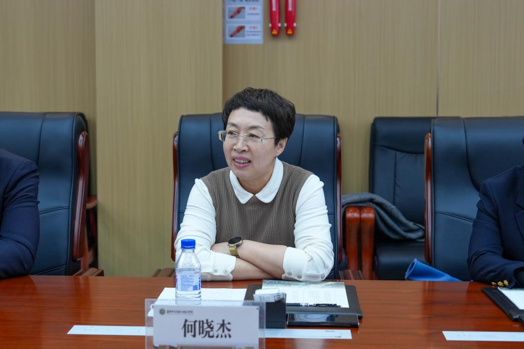 实地参观结束后,双方在匠德楼4号研讨室举行座谈会。会上,何晓杰致欢迎辞,向李亚南一行表示热烈欢迎,详细介绍了我校近年来的发展情况、2025年重点工作规划、“十五五”期间办学愿景以及学校发展的一系列显著成绩。